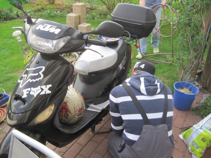 Hier sieht man noch die Originalfarbe des Rollers. Da hat meine Keule ma wieder Zeit und Geld gespart:)